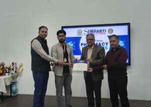 A ceremony for academic excellence was also held during the program, where two talented students were awarded gold medals. Sameer Ali (D. Pharm – 2021–23) was honored for his outstanding academic achievements, discipline, and persistent hard work. Tejaswi Tripathi (D. Pharm – 2022–24) was awarded the gold medal for his best performance in his batch, strong scientific foundation, and outstanding results. The honoring of both students heightened the atmosphere of excitement at the event, and a sense of pride pervaded the faculty and classmates.